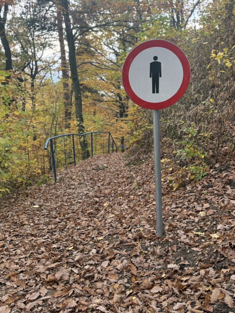 Ostatnio jednak sytuacja stała się jeszcze bardziej absurdalna. U góry schodów, od strony ul. Prusa, pojawił się znak B-41 „Zakaz ruchu pieszych”, który zabrania wejścia na same schody. W praktyce oznacza to, że nie można nimi zejść w kierunku torów, mimo że przez lata była to popularna, turystyczna trasa spacerowa.